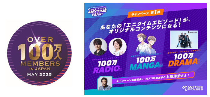 このような多くの方々からのご支持により、エニタイムフィットネスは会員数100万人という大きな節目を迎えることができました。この度は、その感謝の気持ちを込め、より多くの方と想いを共有し、‟エニタイムの楽しさ”を広く発信することを目的に、2025年を「エニタイムYEAR」と位置づけ、スペシャルキャンペーンを開催いたします。