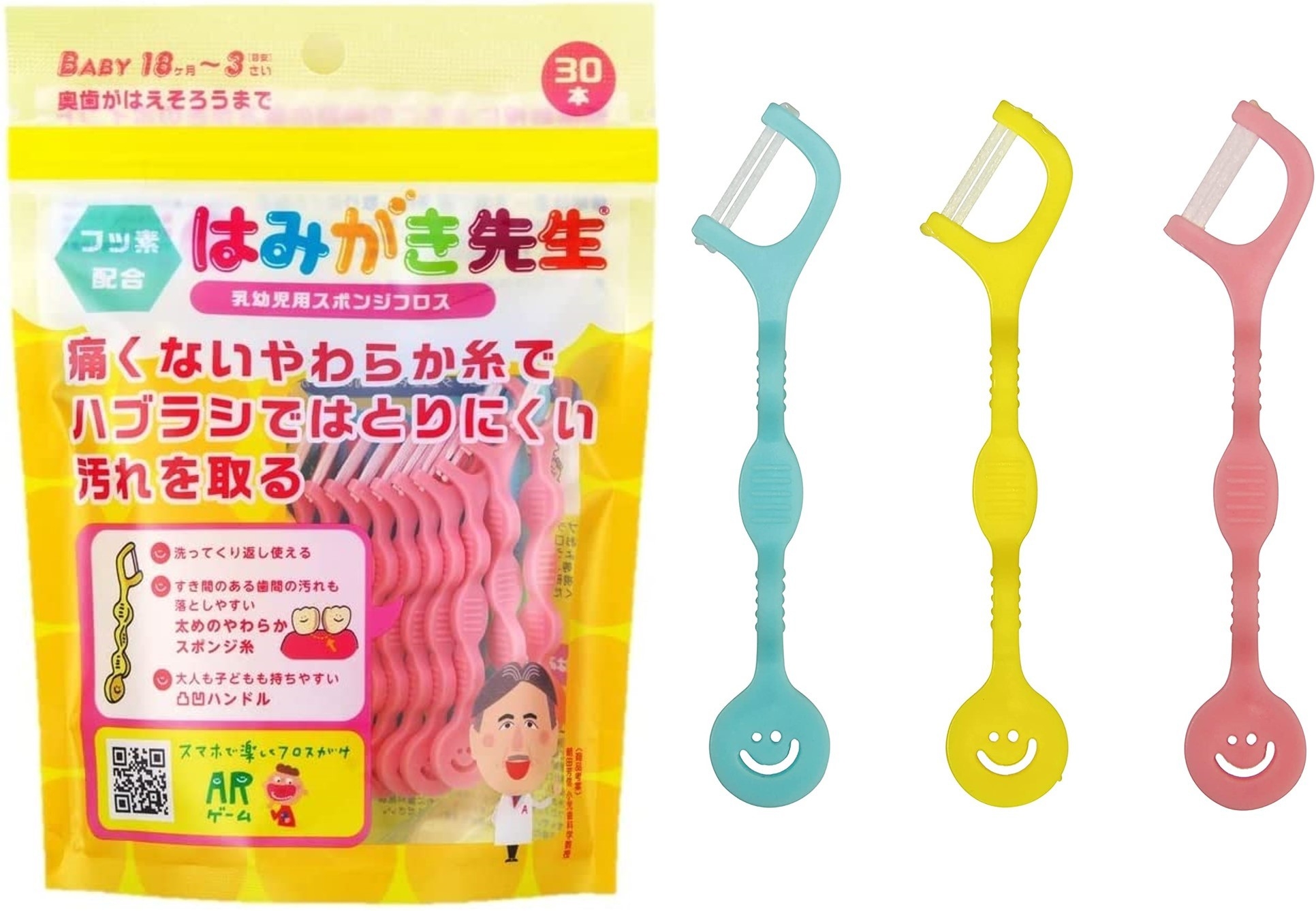 お子様がフロスを嫌がるのがママの大きな問題です。はみがき先生のフロスは「おさかなAR」が付いているので、お子様がフロスを楽しみながら習慣化することができます。
