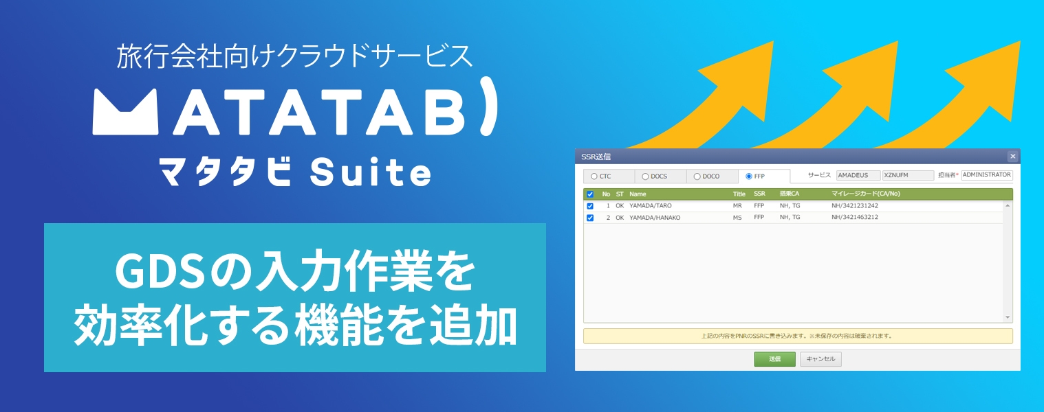旅行会社向けクラウドサービス『マタタビ Suite』 手配業務におけるGDSの入力作業を効率化する機能を追加