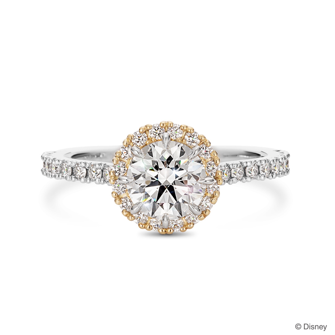 このほどの新作は、メレダイヤモンドを贅沢に散りばめたアームの中央に、ひときわ輝く大粒のダイヤモンドをセットしたデザインのエンゲージリングです。コンセプトは“誰もが夢みる愛の物語。時代を超えて輝くダイヤモンドに、永遠の愛を誓って…。”です。新作は「Disney100」をテーマにした特別なコレクションとして販売します。