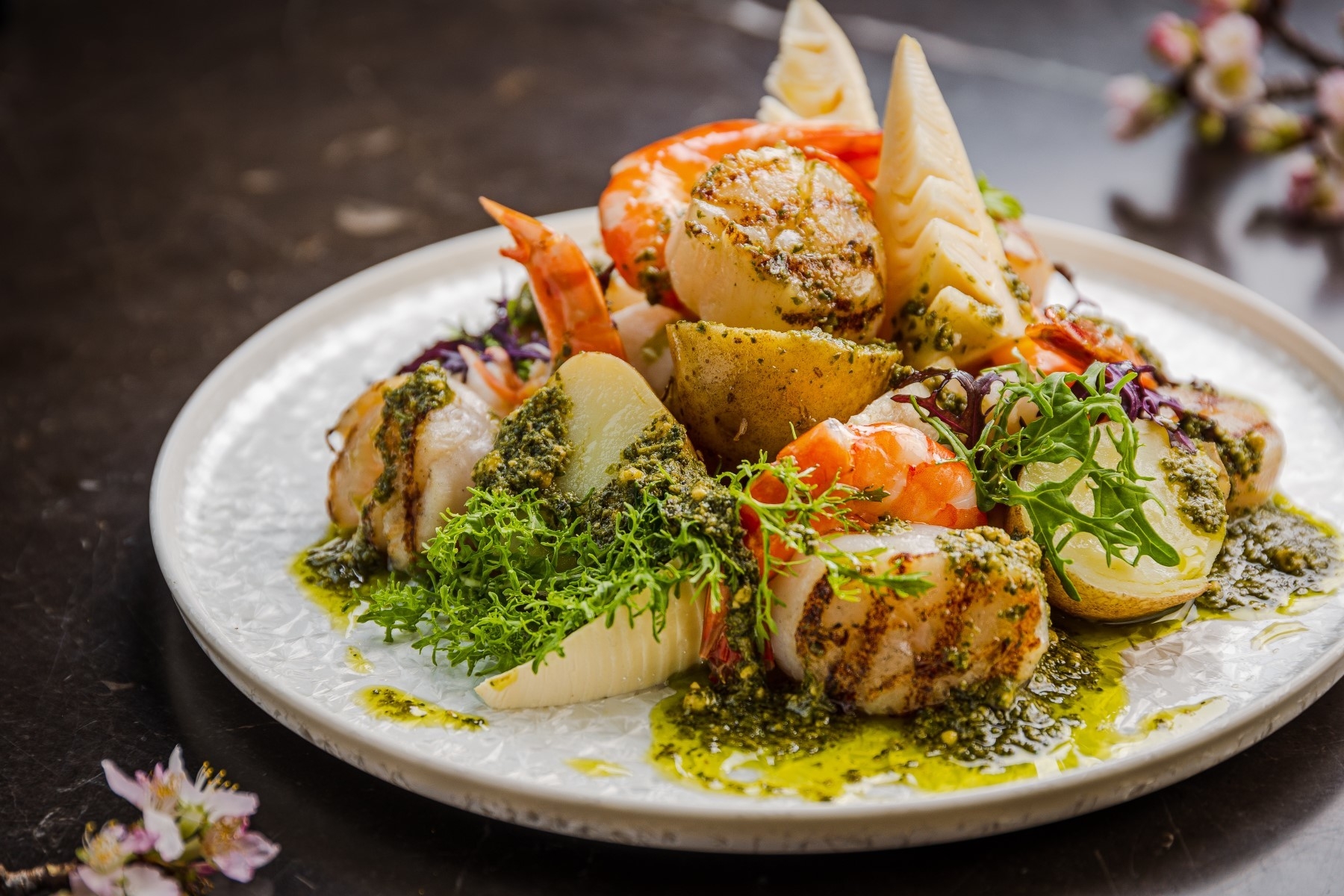 味わい深いからすみを使用した「蛤と菜の花のスパゲッティ 唐墨をかけて」や、旬の魚介を使用した「海老とホタテ、筍のジェノベーゼ和え」は爽やかで濃厚なジェノベーゼソースと。春の季節だからこそ味わうことのできる、料理の数々をご用意いたしました。