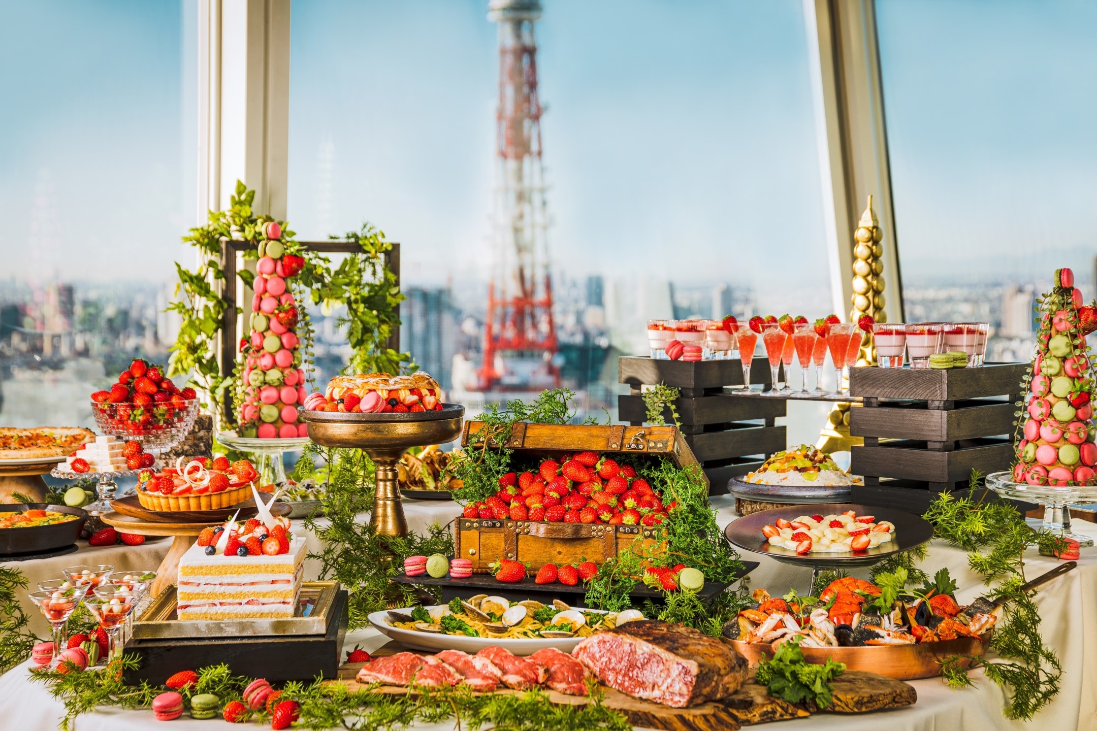 ビル最上階からの絶景と色鮮やかなブッフェの数々を同時に愉しめるXEX ATAGO GREEN HILLS。