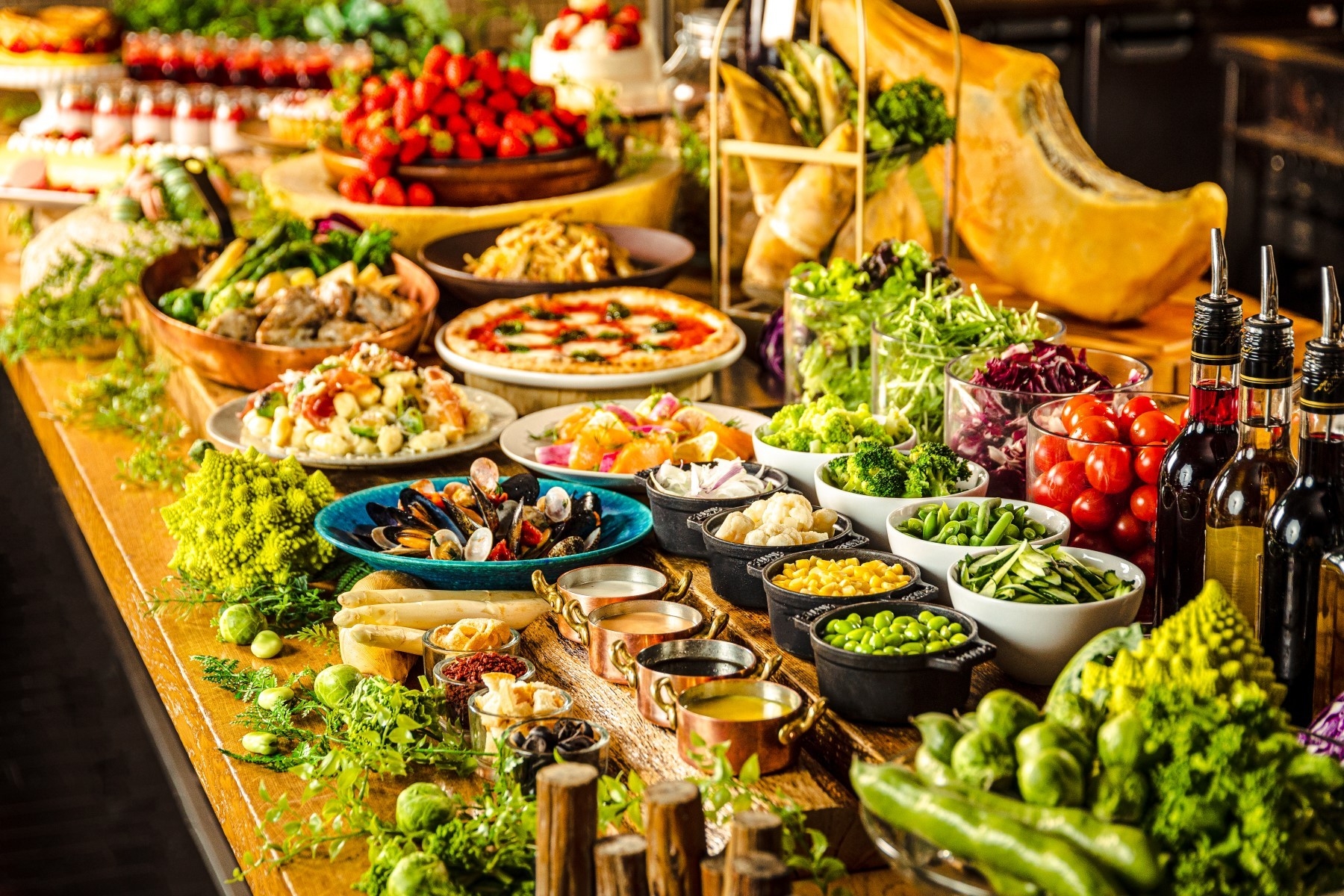 色鮮やかな春野菜をふんだんに使用したシェフ自慢の華やかなイタリアンブッフェが並び、見た目や香りから五感を楽しませてくれます。
