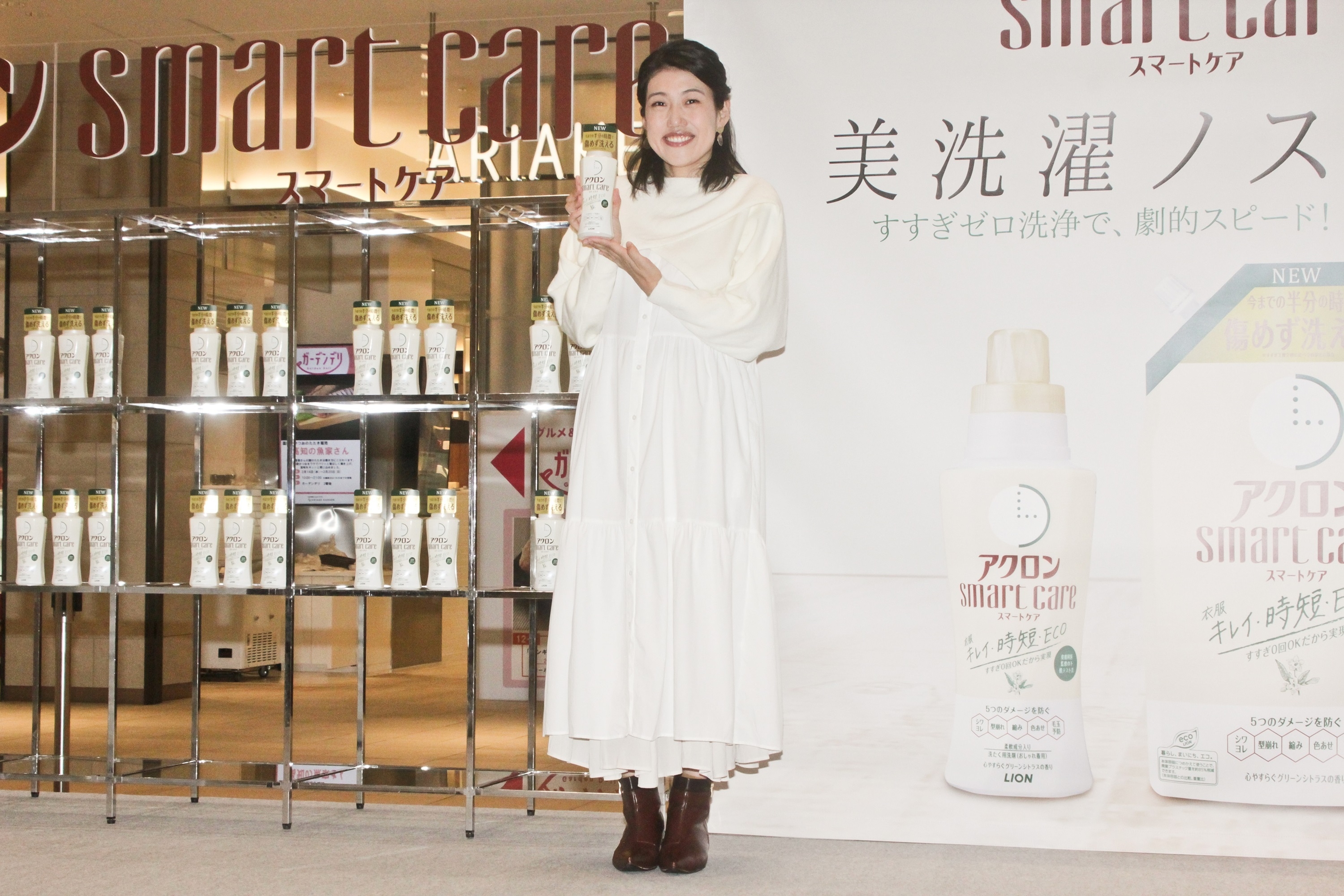 イベントの最後には、会場にいる一般のお客様に向けて、横澤さんから「洗いあがりも美しくなって、時間も短くなって、浮いた時間で思う存分おうち時間を楽しんでいただけたらと思います。私は浮いた時間でどこにでも行ってやろうと思います。洗濯を早く終わらせて有明ガーデンにすぐ行けるのも嬉しいですね。ぜひ皆さんも、時短になって節約にもなる、『アクロンスマートケア』をお使いいただけたらなと思います」というメッセージが。和やかな雰囲気の中、イベントは締めくくられました。