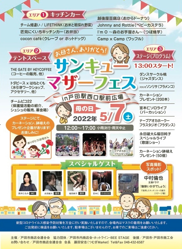 『サンキューマザーフェス2022 in 戸田駅西口駅前広場』 2022年5月7日(土)に開催!~テーマは母の日~