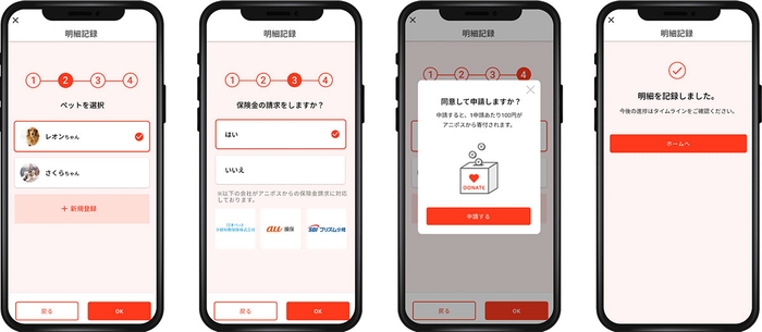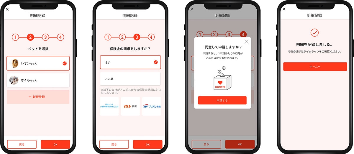 スマホアプリ「アニポス」ではアプリユーザが動物病院の発行した診療明細を「アニポス」にアップロードした件数に応じて、アニポス社が動物団体に寄付を行います。また、アップロードされた診療明細データは、より良い動物医療のために活用されます。