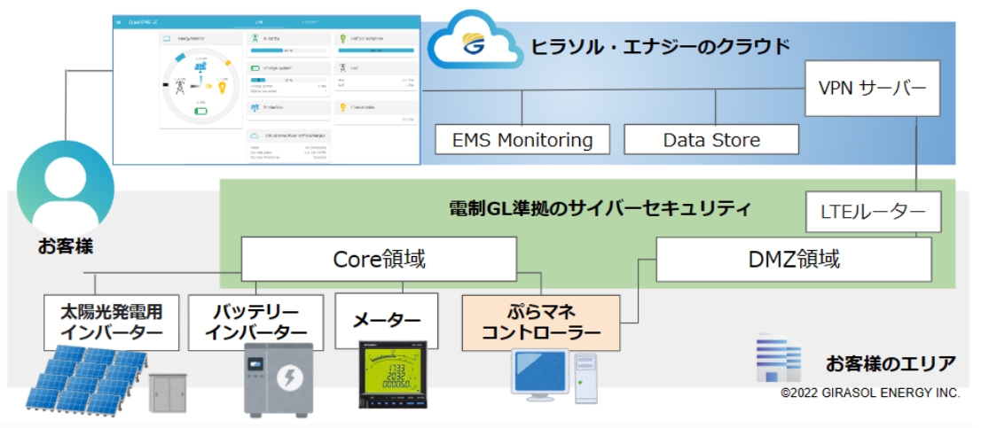 これまでの太陽光発電では、単一メーカーがパワーコンディショナーや蓄電池を供給し、異なるメーカーとの機器接続が難しいこともありました。「ぷらマネ(R)リンク」は、複数のメーカーの機器を統合して一体的に運用できることが特徴です。Nesradでの本実証サイトでは、国内最多種類(※3)の3カ国9メーカーの機器を統合して運用することに成功しました。さらに、国内のセキュリティ規格を満たし、高い安全性のサイバーセキュリティを実装しています。