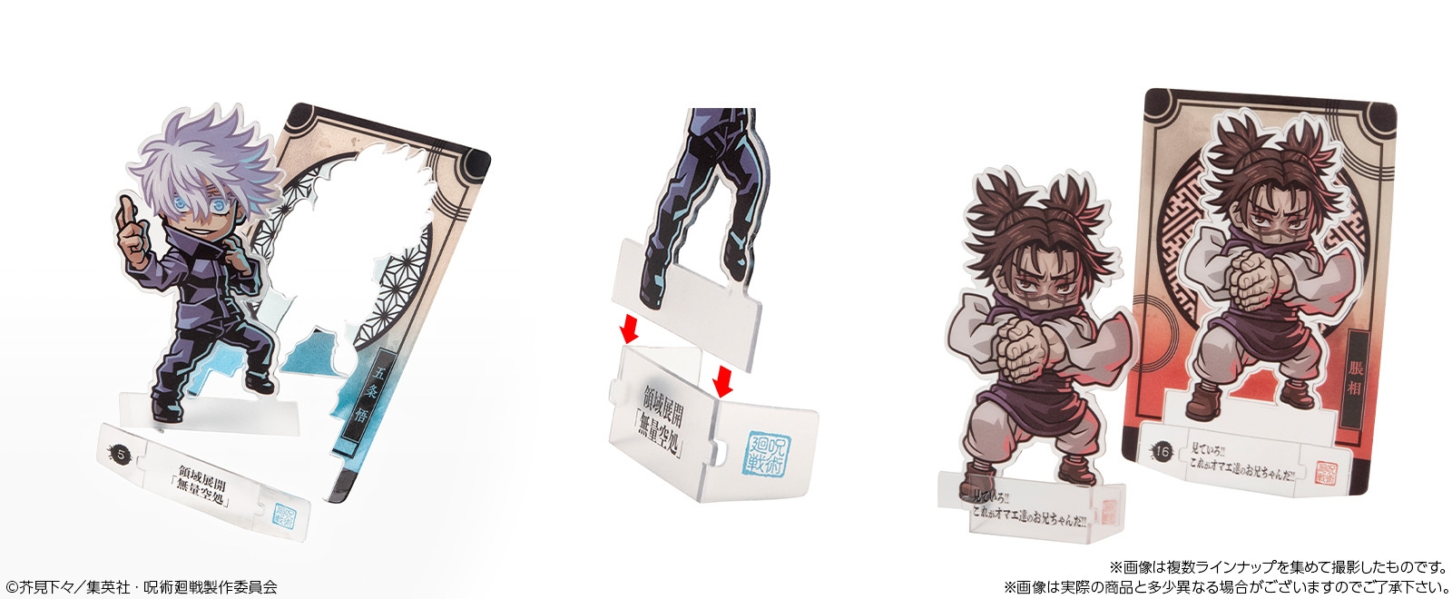カード(スタンドアート)のラインナップは「虎杖悠仁」をはじめ、「伏黒恵」、「釘崎野薔薇」、「五条悟」はもちろん、「夏油傑」、「真人」など、渋谷事変の主要キャラを網羅した全22種で展開いたします。