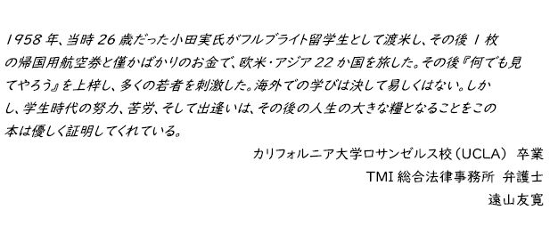 本書では、偏差値28の高校生がカリフォルニア州のコミュニティーカレッジ(コミカレ)に入学し、その後カリフォルニア大学ロサンゼルス校(UCLA)に編入学、そして飛び級で卒業した小泉自身の留学経験をはじめ、U-LABO設立に至るまでの想い、米国編入制度の仕組みと対策などについて紹介しています。世界名門大学への留学を考えている方にはぜひ一読していただきたい一冊です。