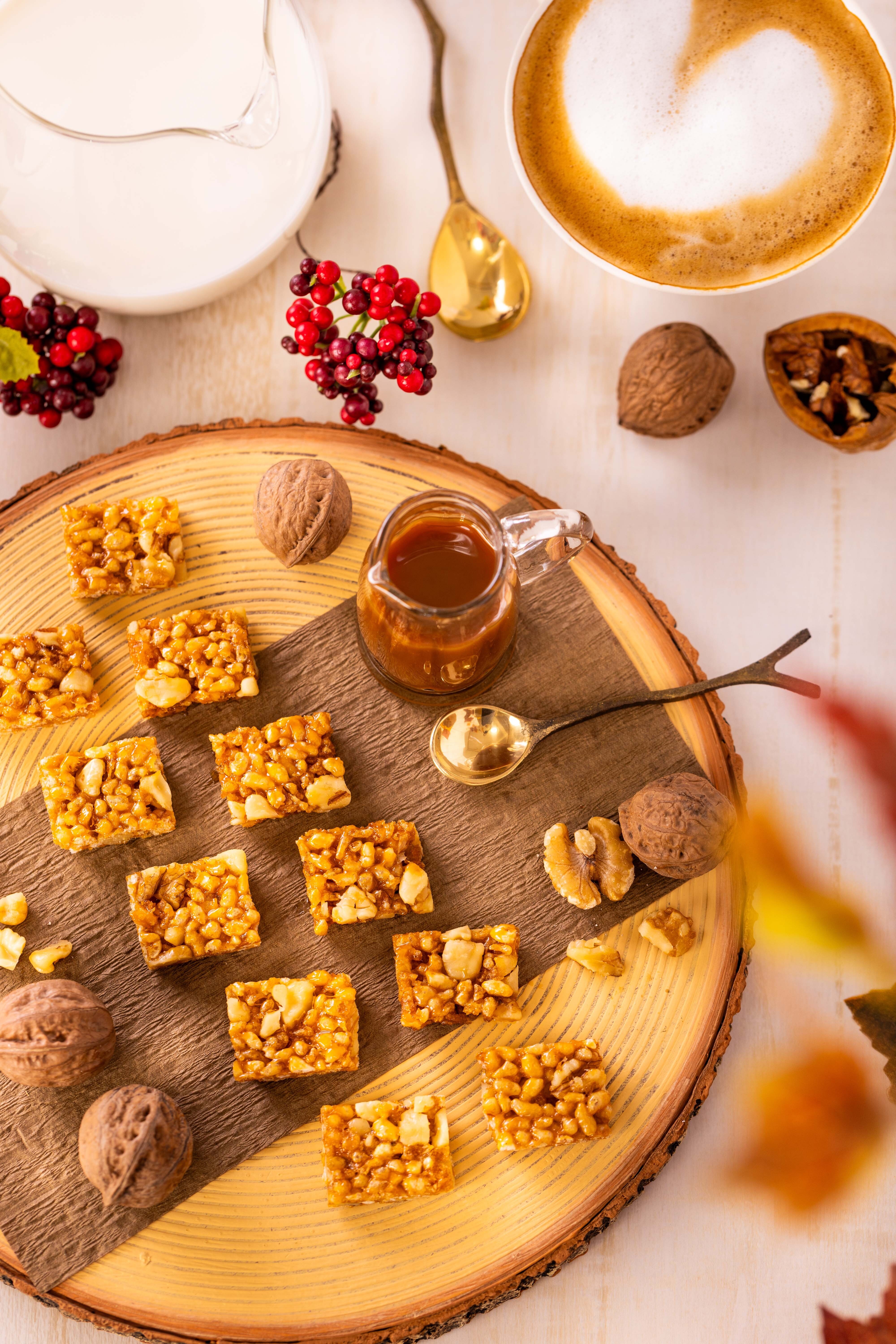 ほろ苦いキャラメルに、ぎっしり詰まった香ばしいクルミが特徴的。