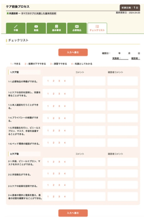 ・新人看護師が入力したチェックリストを教育担当者が確認し、コメントを返信