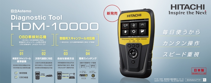 日立Astemoアフターマーケットジャパン株式会社(代表取締役社長:福岡 正晃)は、2024年5月29日に自動車故障診断機ダイアグノスティックツール『HDM-10000』を発売いたしました。