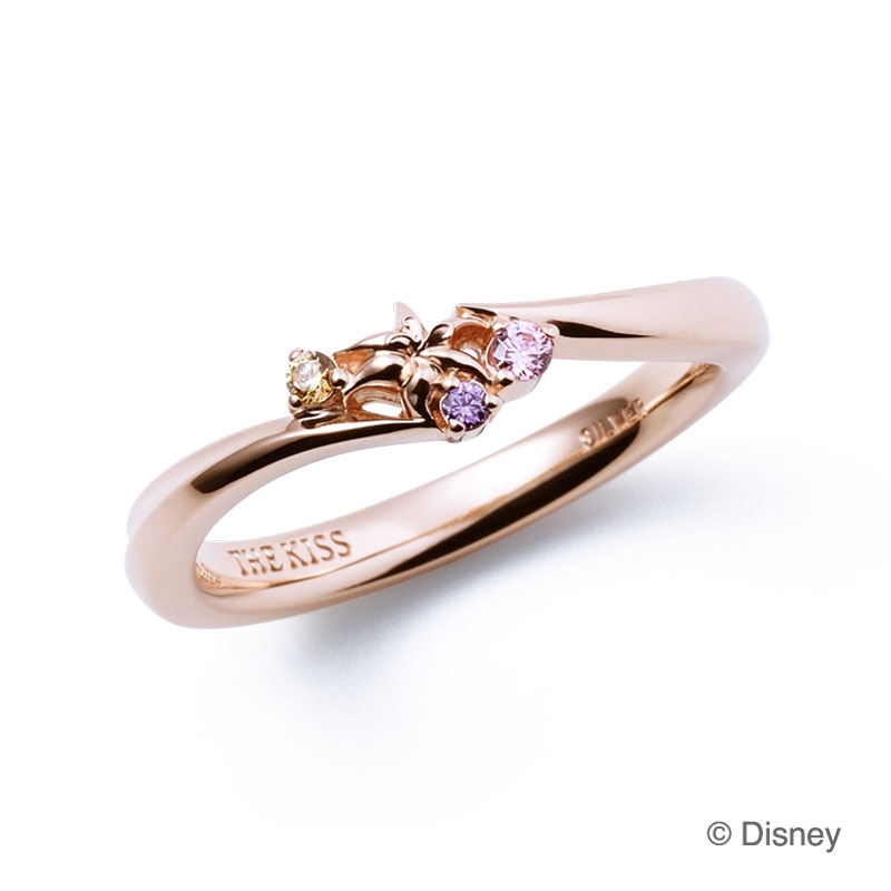 リングの中央には物語のキーとなる魔法の花をデザインし、ラプンツェルの世界観を表現しました。