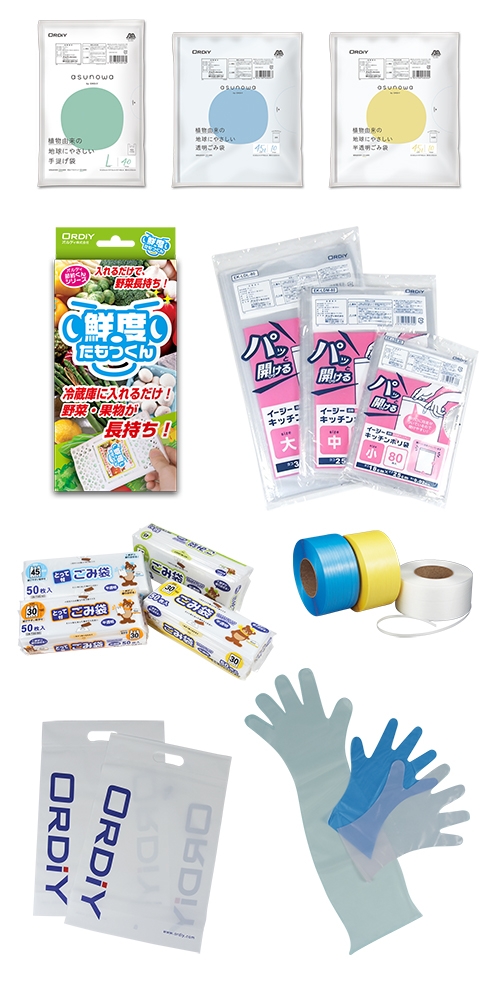 • 家庭用品の開発・製造・販売(ごみ袋、レシピ付料理用袋、キッチン用ポリ袋など)