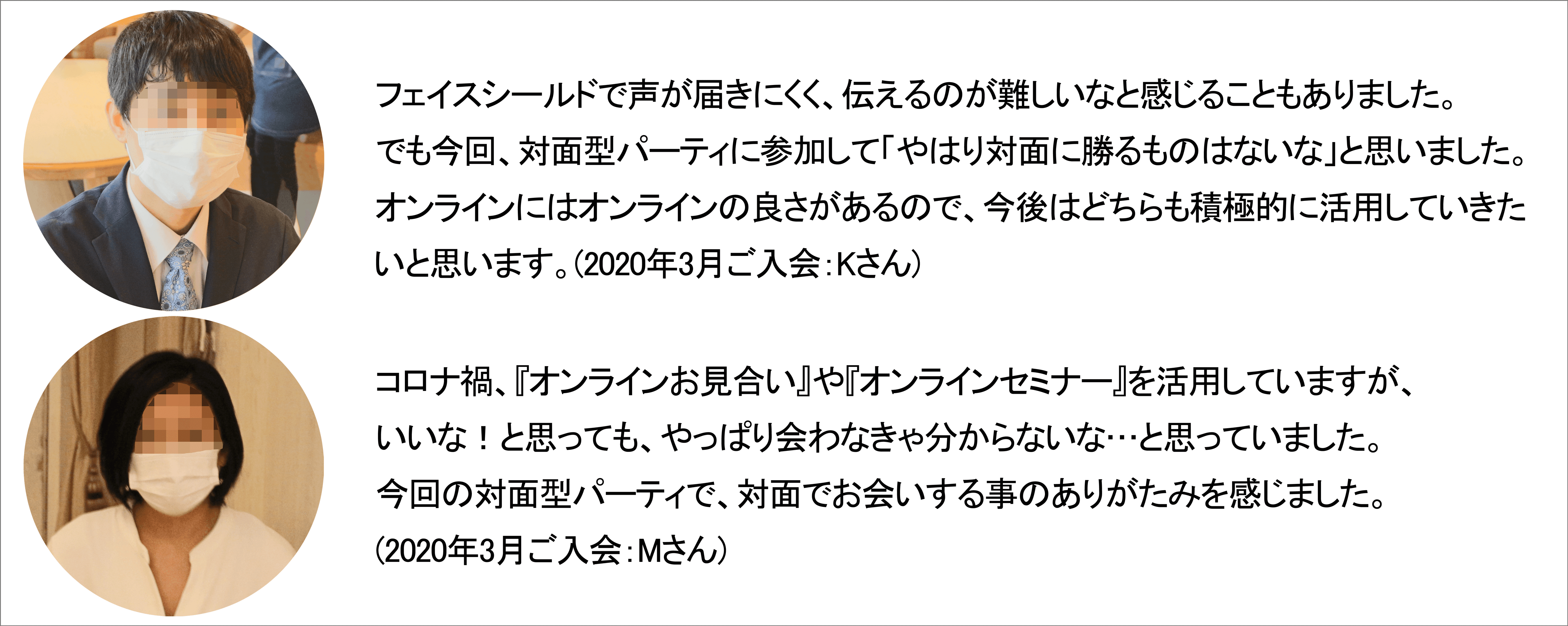 「フェイスシールド着用、会員限定パーティ」の感想をお聞かせいただきました。