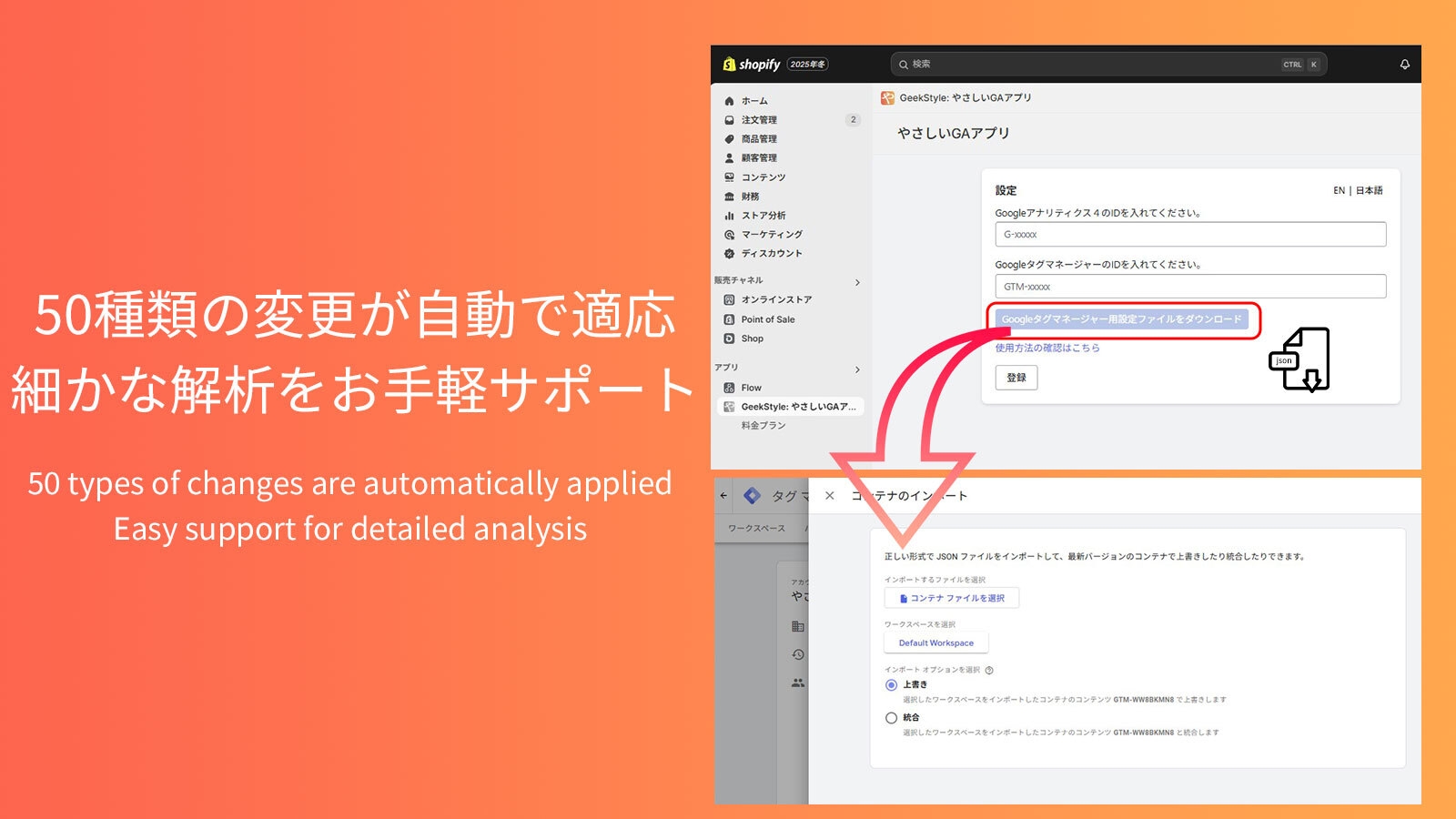 ShopifyやEC-CUBEのアプリ開発や構築を行う株式会社GeekStyleJapan(所在地:兵庫県尼崎市、代表取締役:津村 健介)は、Shopify利用者を対象とした簡単にGA4やGTMを導入できる新サービス「GeekStyle:やさしいGAアプリ」(やさしいGAアプリ)の提供を2025年2月1日(土)に本格的に開始します。