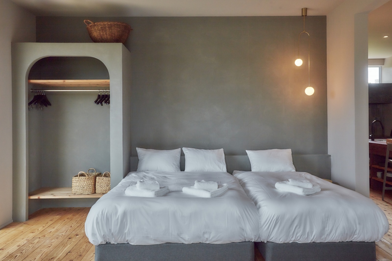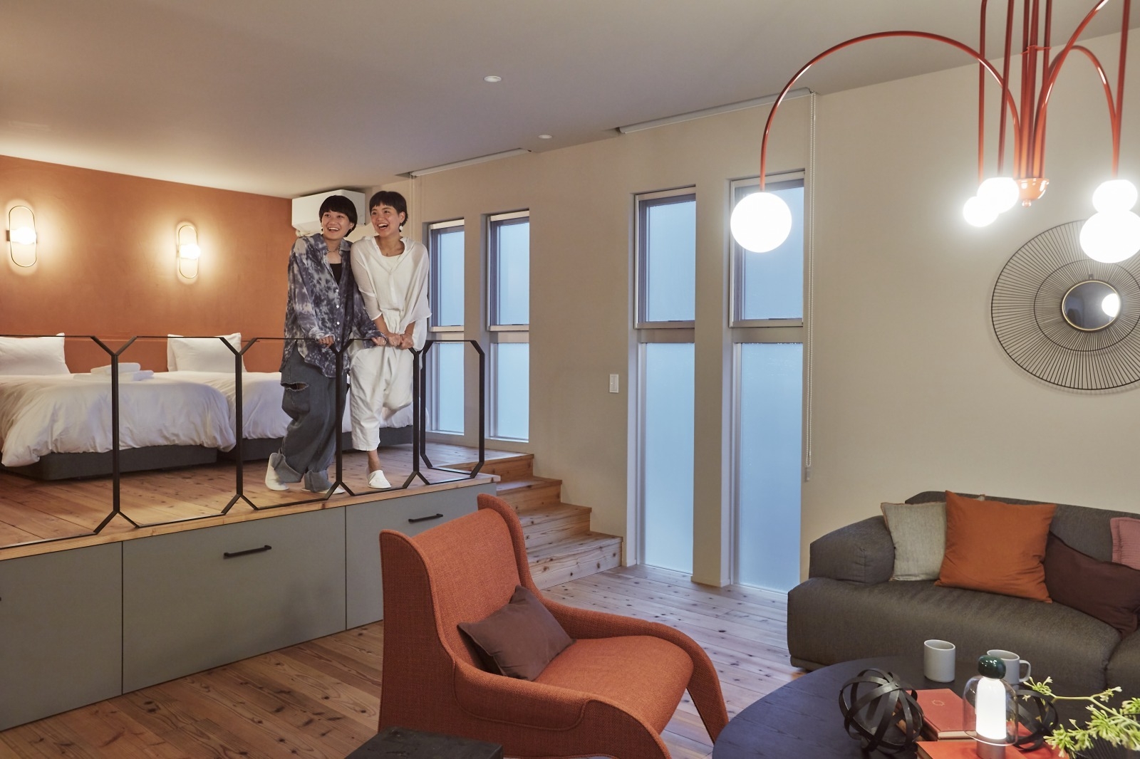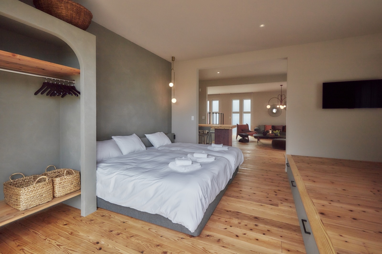 最大10名の宿泊が可能。ベッドルームは2つのエリアに分かれ、それぞれダブルとシングルのトリプルルーム。また、ゲスト人数に応じ小上がりに4組のお布団のご準備がございます。