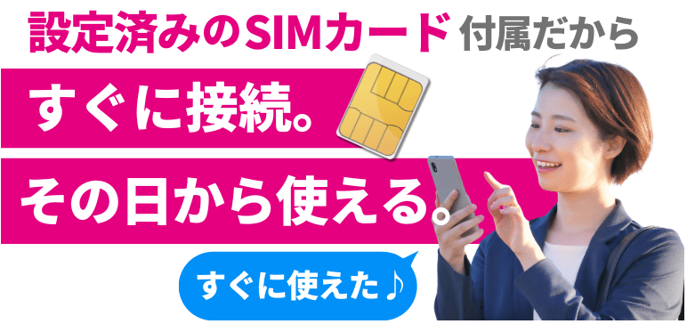 ●設定済みのSIMカード付で面倒な接続設定はいりません。