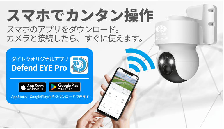 防犯カメラ企画・製造・販売メーカーであるダイトクは、顧客ニーズにこたえるべくWiFiがない遠隔地でも使える防犯カメラの開発に着手しました。中でも4G回線の高コストの問題は解決すべき課題でした、そのような状況の中、ようやくコストと機能の最適化を追求したモデル「4Gカメラ ディフェンダー301」の開発を実現。WiFi設備のない場所やソーラー(別売)を装着すれば電源の取れない場所でも設置可能。諦めていた所など何処でも防犯が可能になり、次世代の防犯対策としてスタンダードになる防犯カメラです。また、クラウドファンディングサイトで先行予約を開始してから2時間で目標を達成するなど、現代の多様化する犯罪状況に対応した防犯カメラとして注目を集めています。