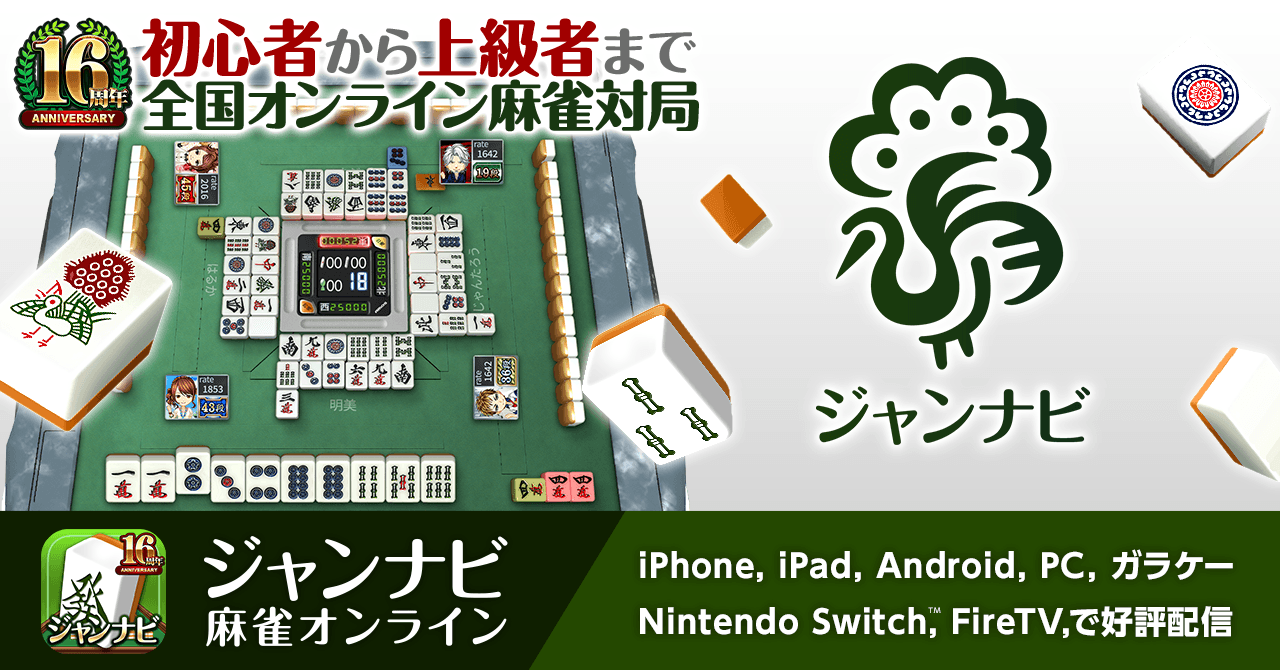 「ジャンナビ麻雀オンライン」は今年で16周年目を迎え、様々なプラットフォーム、デバイス端末で遊べるオンライン麻雀コミュニティのゲームです。