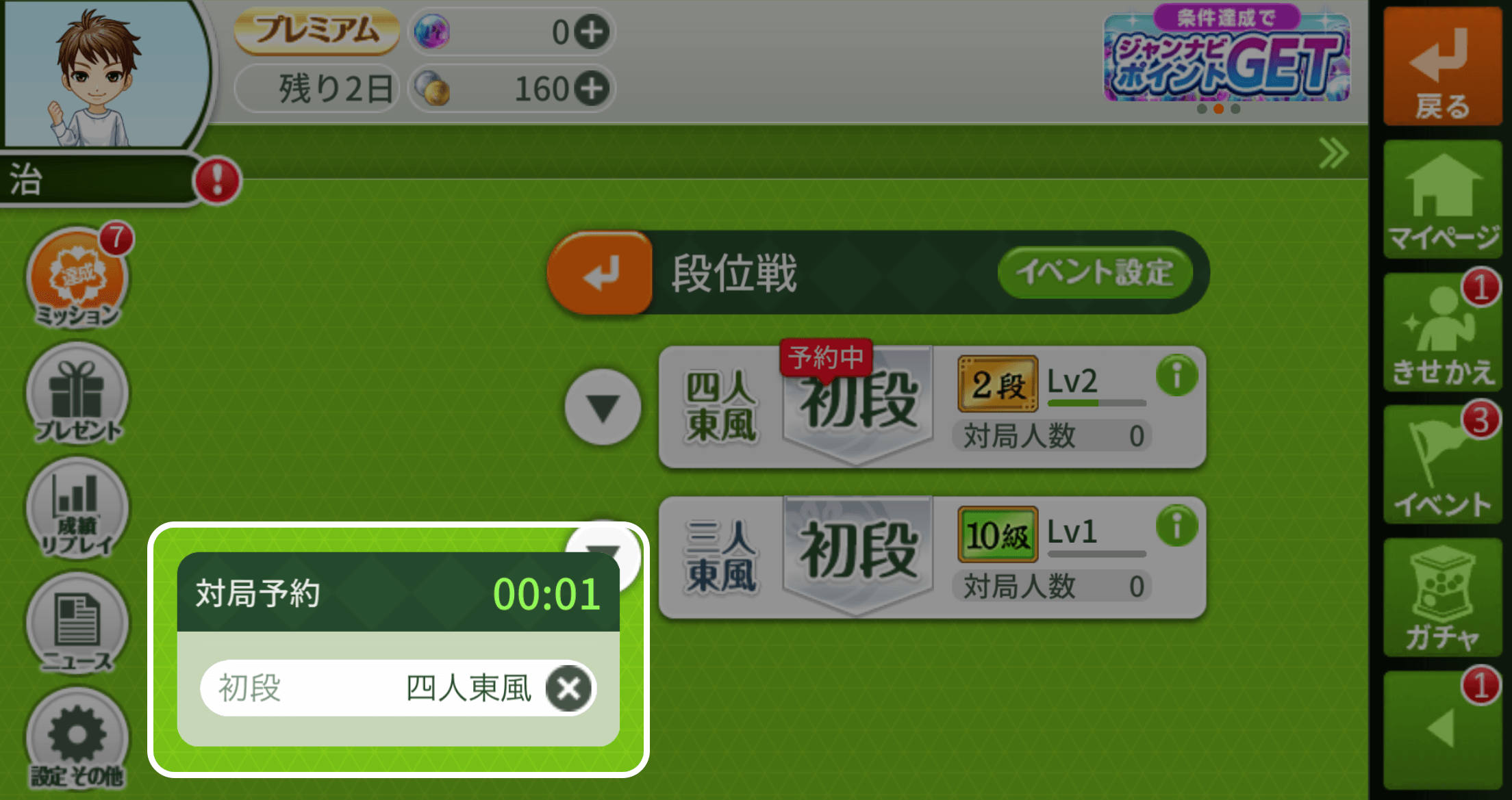 プレイヤーの段位に応じたロビーに分かれることにより、実力の近いプレイヤーと適切なロビーで対局することができます。