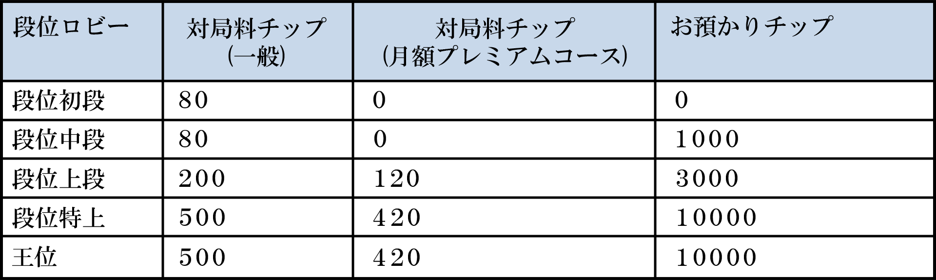 月額プレミアムコースは、対局料チップが80チップ割り引かれるお得なコースです。