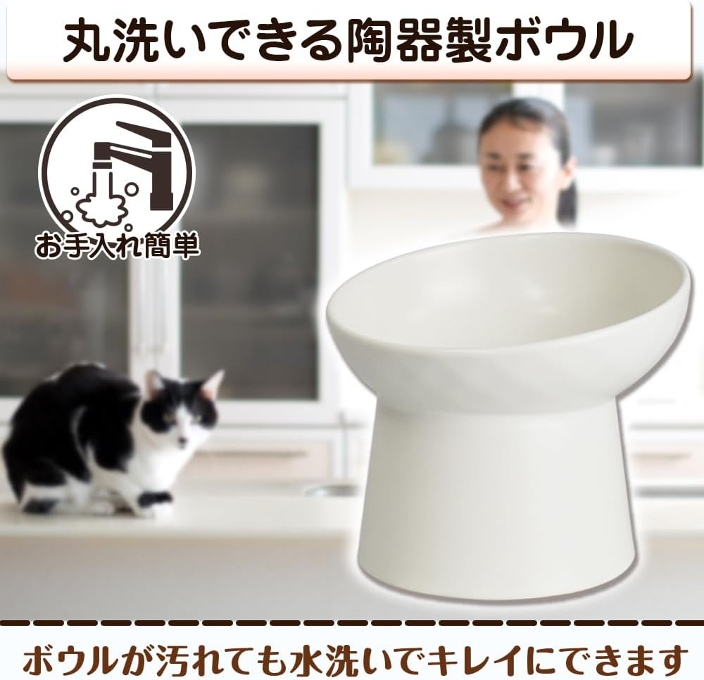 このフードボウルは陶器でできており、プラスチック製よりも安定感があるので猫ちゃんがぶつかっても転倒しにくいところが魅力。汚れが付着しにくく、食後は水洗いで簡単にピカピカに!いつでもサッと洗えるので、常に綺麗なフードボウルで"ごはん"をあげられます。