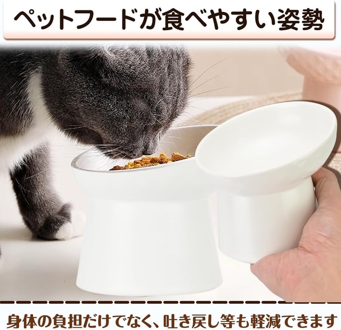 商品名: 首の負担を和らげる傾斜があるペットフードボウル(ホワイト)