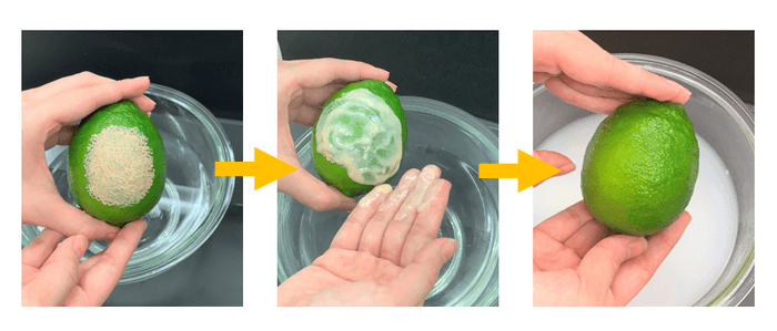 しっかりめのファンデーションに、クレンジングバームを絡め、乳化させ汚れを洗い流すと、つるんとなめらか肌が叶います。