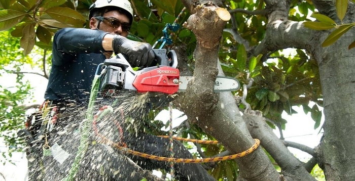 近年、樹木の高木化や老齢化による倒木被害対策として、樹木伐採の需要が増えています。その中で、家屋や電線などの障害物で根本から伐採するのが難しい木は、上部から解体するように枝を切り下ろしていく特殊伐採と言われる手法が用いられています。この伐採方法で多用される道具の一つが、軽くて取り回しやすいトップハンドルタイプのチェンソーで、住宅地など騒音を抑えたい環境下に適したモーター駆動が、その主流になってきています。