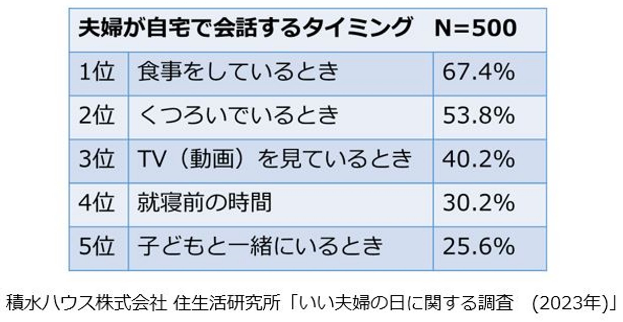自宅で夫婦が会話するタイミングは「食事をしているとき」が最も多い