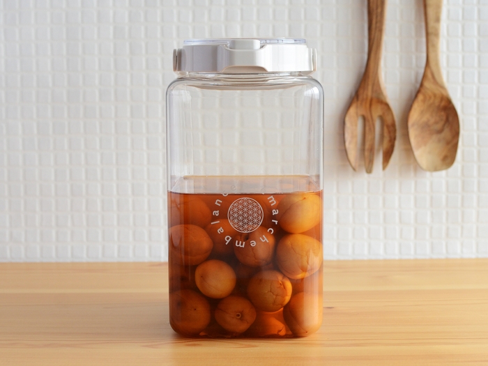 フタはワンタッチで開けられるので食品の出し入れが簡単です。また、パッキン付きでしっかり密封でき、湿気や酸化による食品の品質低下やにおい移りを防げます。シロップや果実酒以外にも、米や乾物、シリアル、お菓子などの保存にもおすすめ。パッキンは取り外してお手入れ可能です。