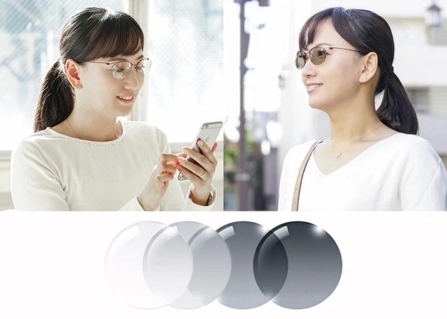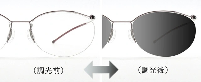 ・サングラスに早変わり。太陽光でレンズ色が透明から濃スモークに変化