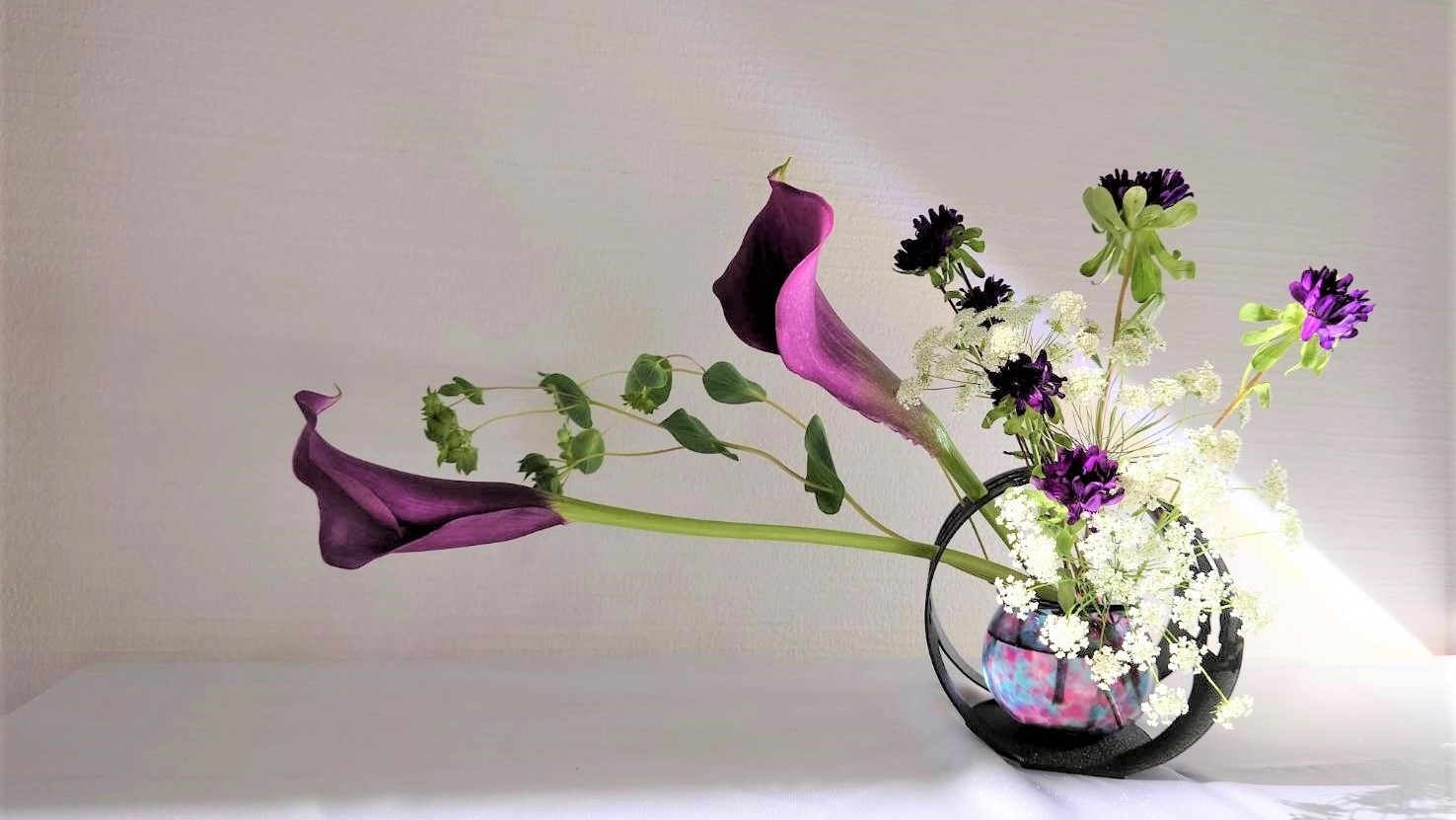 柄(文様)の部分を支えにして剣山が無くても花が自立し、一輪挿しやボリューム感を出した生け方など多彩に飾る事ができ、初心者から上級者まで楽しめる花器として利用できます。