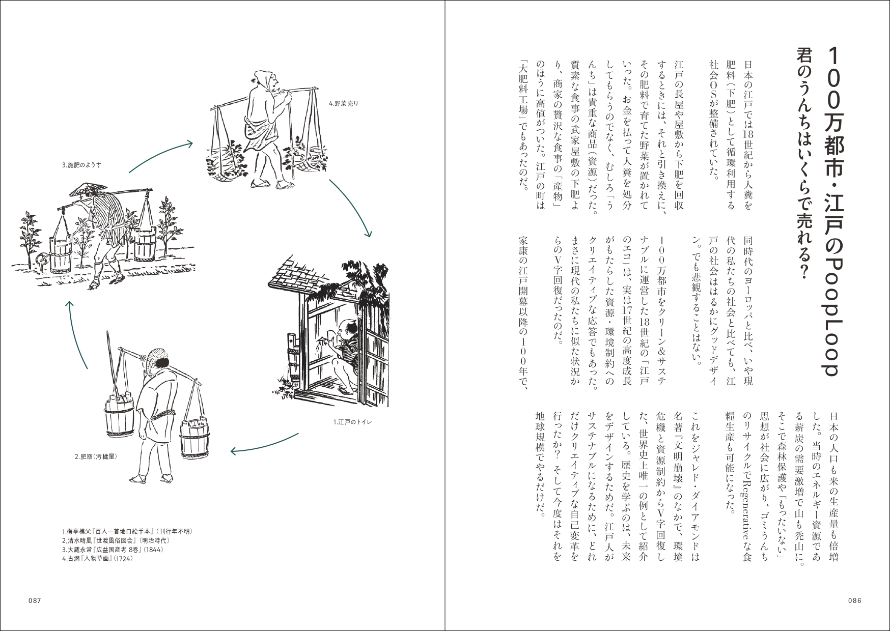 自然界にはゴミもうんちも存在しない。すべては有用な資源として循環してゆく。「忌避」や「忘却」の対象として“ゴミ”や“うんち”という概念が存在すること自体に、社会デザインの失敗があるのではないか? 排出されたものを循環させる自然の仕組み、人類の社会と文化、そして最新の技術をビジュアルに紹介し、「人類の社会OS」を更新する方法を探る。21_21 DESIGN SIGHT企画展「ゴミうんち展」(会期2024年9月27日〜2025年2月16日)のコンセプトブック。