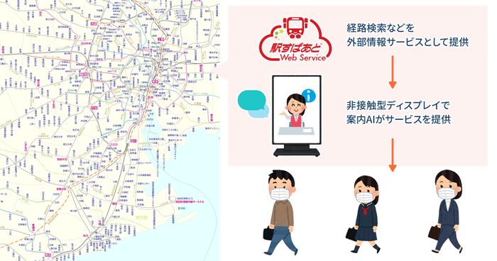 駅での「非接触型ディスプレイ案内AI」試行設置の実証実験に「駅すぱあとWebサービス」を提供