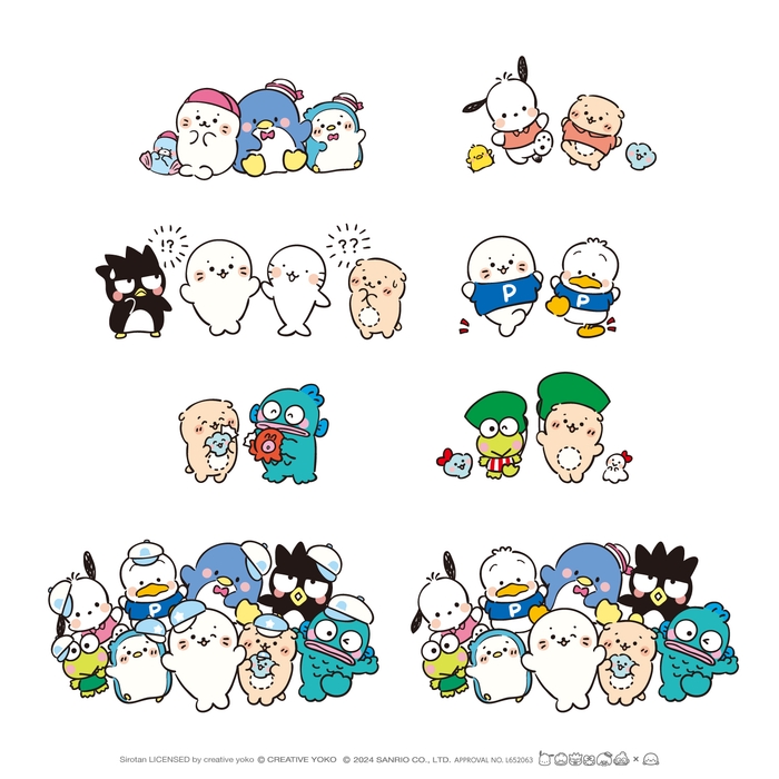 まねっこが得意な『しろたん』が『はぴだんぶい』になりきったり、それぞれのキャラクターたちが仲良くふれあっている姿など、サンリオおよびクリエイティブヨーコ社が新たに描き下ろした特別なコラボレーションです。