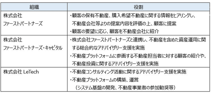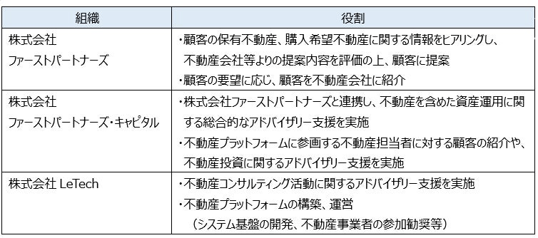 株式会社ファーストパートナーズ(本社:東京都港区)と株式会社ファーストパートナーズ・キャピタル、株式会社LeTech(本社:大阪市北区)は、顧客本位での不動産取引を実現するため、共同で不動産プラットフォームの開発、運営を行うことに合意し、業務提携契約を締結したことをお知らせします。
