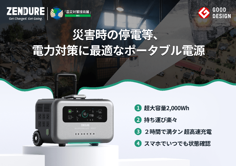 ゼンデュア・ジャパン株式会社 (Zendure Japan Co.,Ltd 本社:東京都渋谷区 代表:小原祐樹)は充電器の分野でグローバルに成長を続けるZENDUREが2022年2月3日(木)~4日(金)にパシフィコ横浜で開催される震災対策技術展にてポータブル電源SuperBase Pro2000を展示することを発表します。
