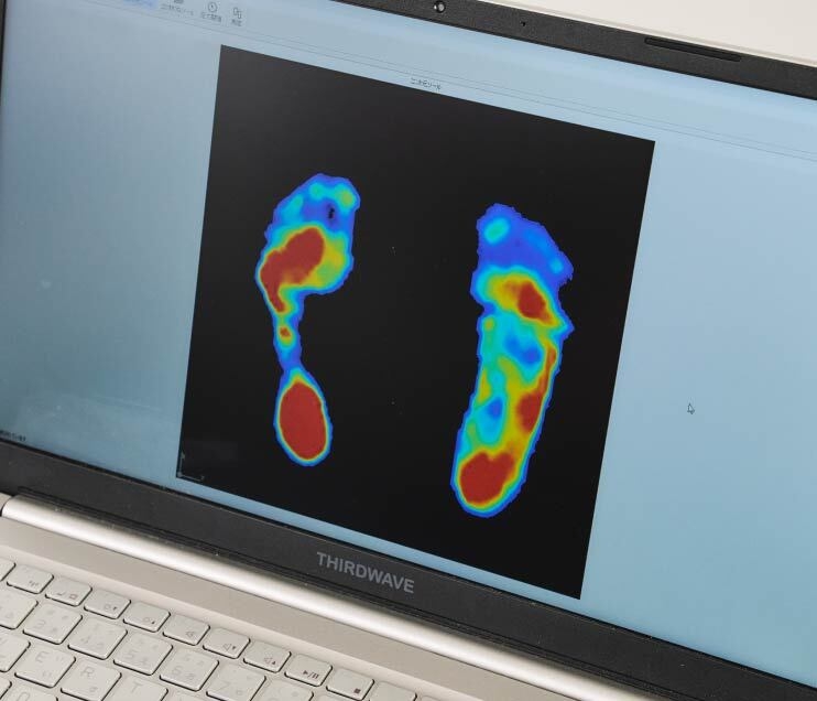 ・店内には足圧計測器を常設し、metaインソールがお客様の足裏へフィットし、足圧が適切に分散されている様子を目で見て実感していただけます。