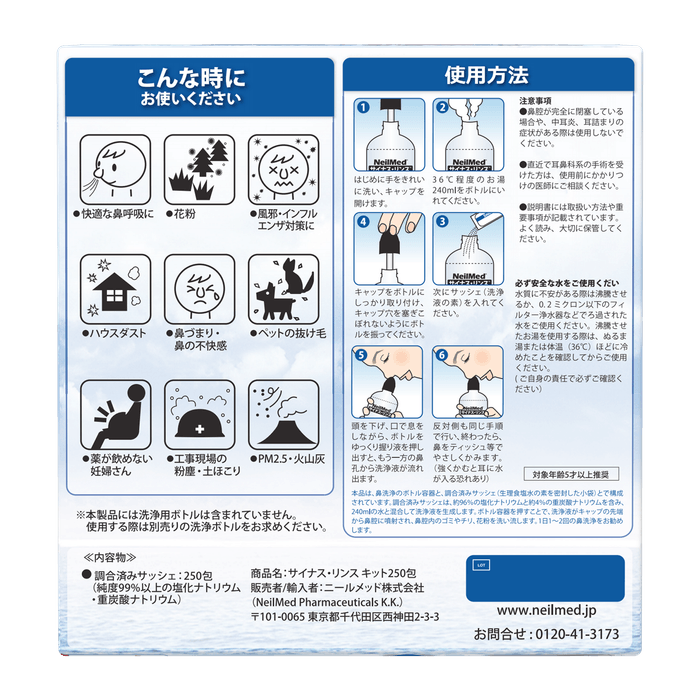 ニールメッド社の「サインス・リンス」は、鼻疾患を患っていたドクターが開発した安心・安全な鼻洗浄キットです。アメリカやカナダでは「医師から最も推奨されている製品」として評価されており、国内でも2千万以上の医療機関で採用、推奨されています。
