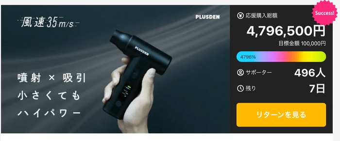 終了間近!Makuakeで目標4,700%以上達成のミニ掃除機 「PLUSDEN 噴射・吸引の2WAYエアダスター」のプロジェクトを 4月4日(金)22時まで実施
