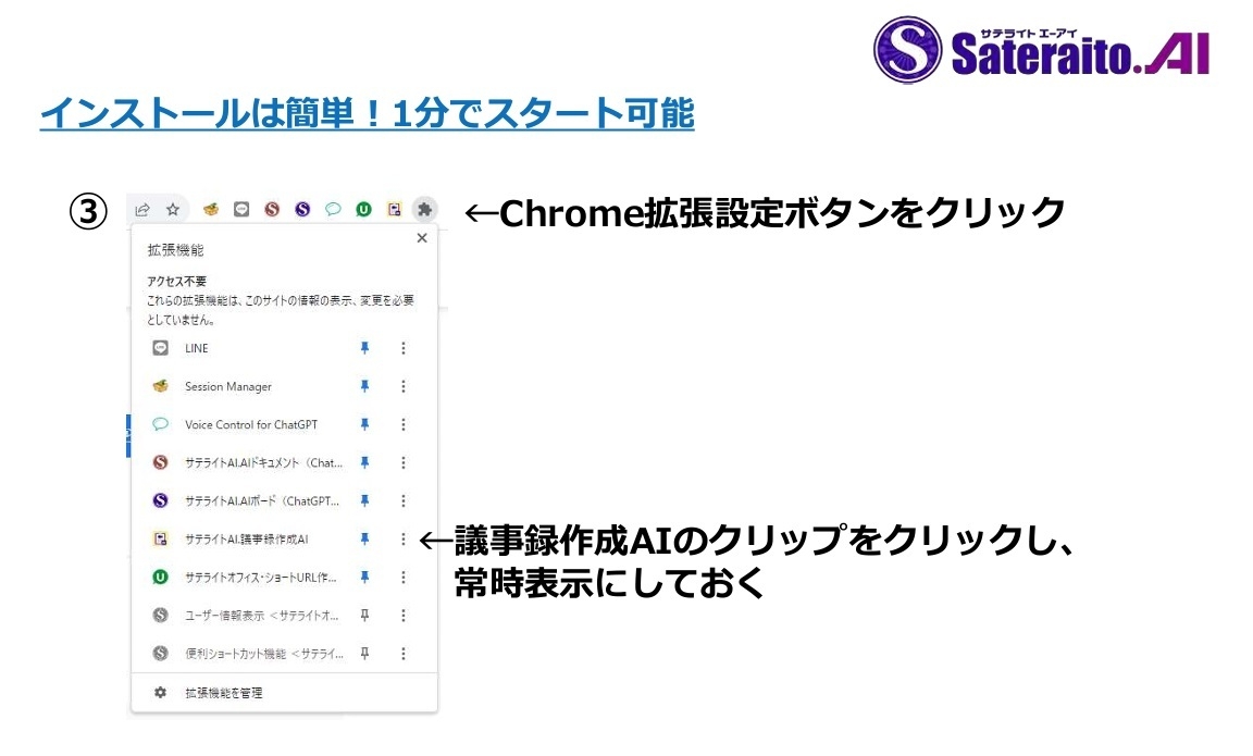 ・Chromeブラウザ/Edgeブラウザで、Chrome拡張をインストールすればすぐに利用可能