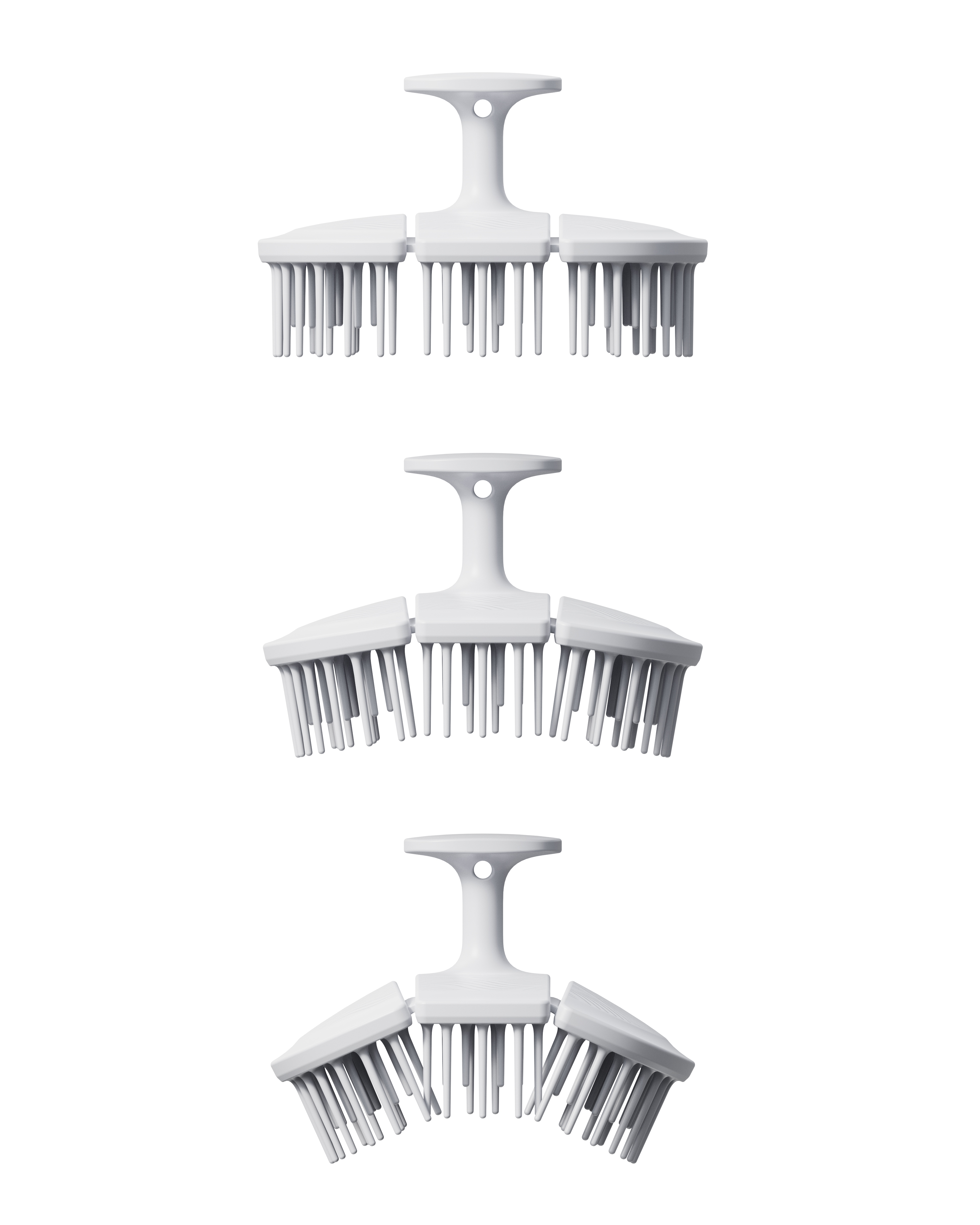 短いブラシが髪の絡まりをほぐし、長いブラシが頭皮にしっかりとアクセス。