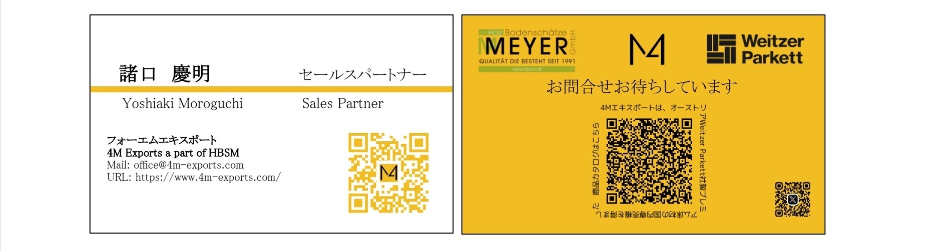 1991年に設立されたHBSM社は、優れた顧客サポートと最高品質の製品と施工を提供することに尽力しています。HBSM社の4M Exports部門は、日本とオーストリアの拠点で事業を行っている日本市場に精通した専門チームで構成されており、ヴァイツァー パーケット社の高級寄木細工フローリングを日本向けに専門的に輸出しています。Weitzer Parkett Nippon Selectionは、日本市場向けの特別仕様であり、日本ならではの住空間やニーズに合わせて特別に設計・製造されています。