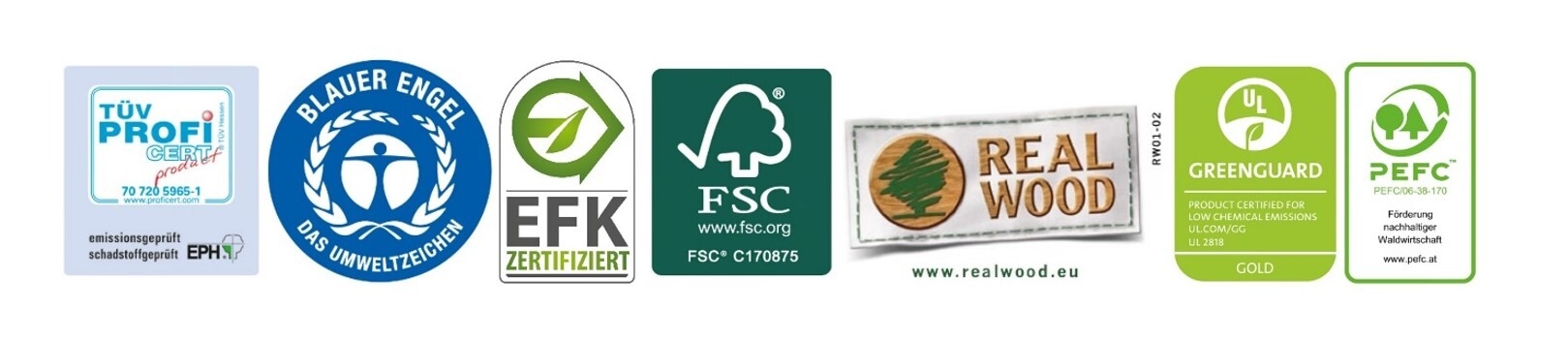 ヴァイツァー パーケットの製品は、すべて持続可能な森林から調達された木材を使用し、ドイツ環境省認定の「ブルーエンジェル」認証を取得済。