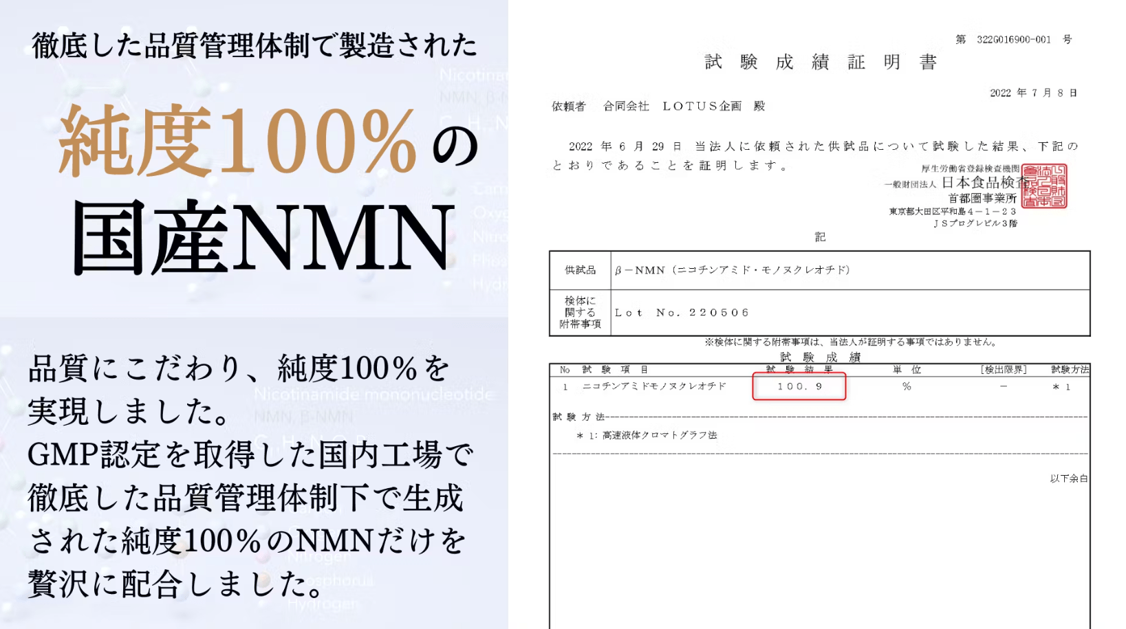 現役医師監修のNMNサプリメント。純度100%!主要な成分はNMNのみ。