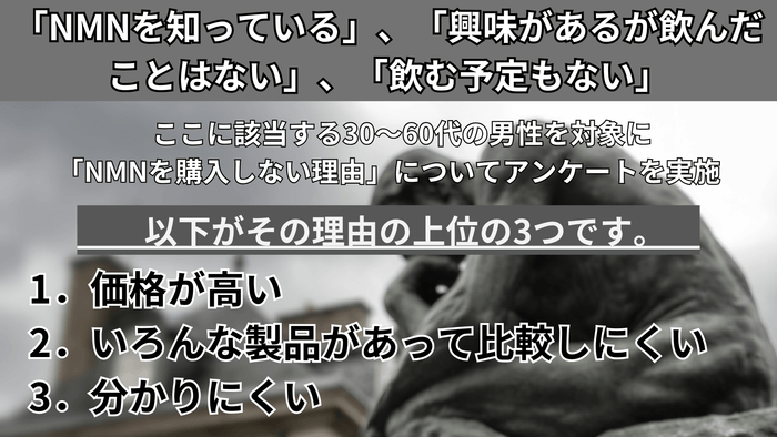 この商品のコンセプトについて。世の中の皆さんのNMNについてのイメージは?