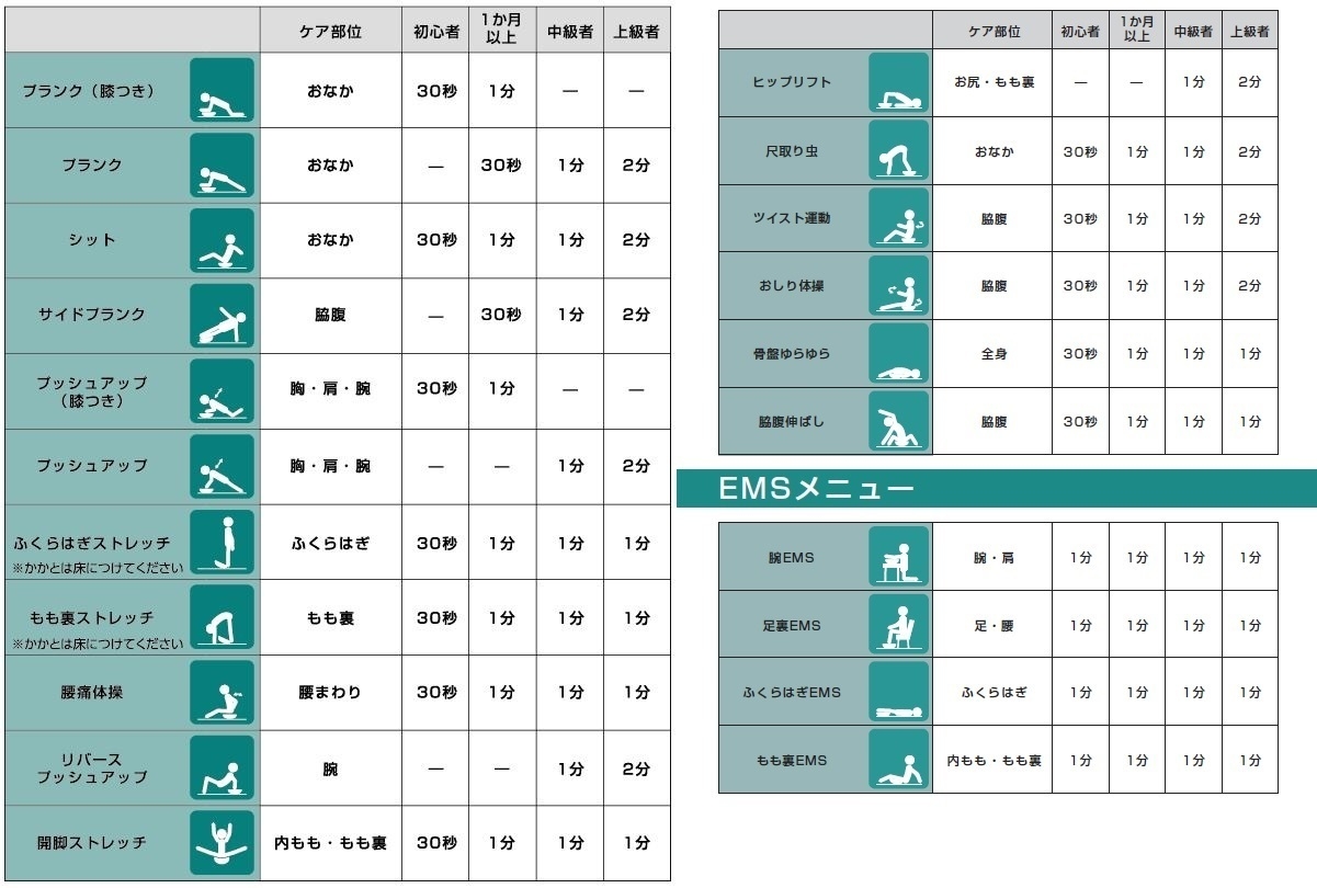 日頃の運動不足は勿論、トレーニングを自宅で長く続けられる時間1分を目指して、より効率的な運動を行え、エクササイズやトレーニング初心者でも使える商品をティップネス専門トレーナーと開発しました。