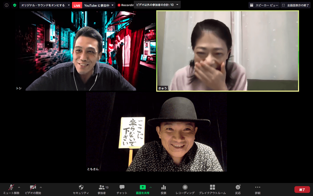 劇場で語り合う時間も持てず、心の距離感の遠くなりがちなコロナ禍の時期だからこそ、オンラインで互いが耳を傾け合い語れる時間は、不思議と「ほっ」とできる貴重な時間になるに違いありません。